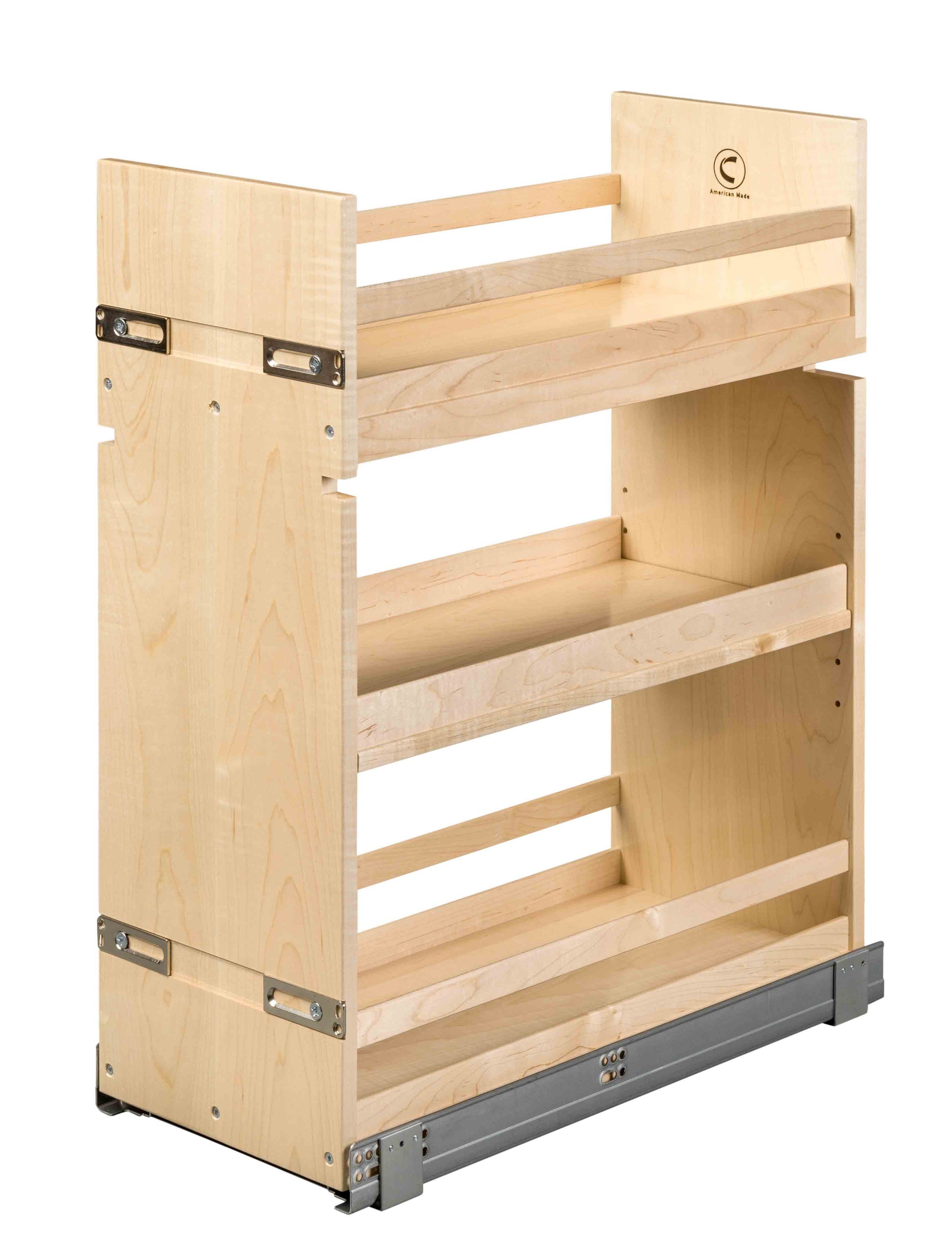 The Base Organizer offers a practical solution for organizing your kitchen essentials with three spacious shelves. The middle shelf can be easily adjusted to your preferred height, while the open top design ensures quick access to your items. Each unit is equipped with Blum® TANDEM 100 lb. rated, soft-close, undermount slides, along with floor and door mount brackets for smooth operation and simple installation. With its durable construction and thoughtful design, this organizer maximizes storage while maintaining a clean, organized look.