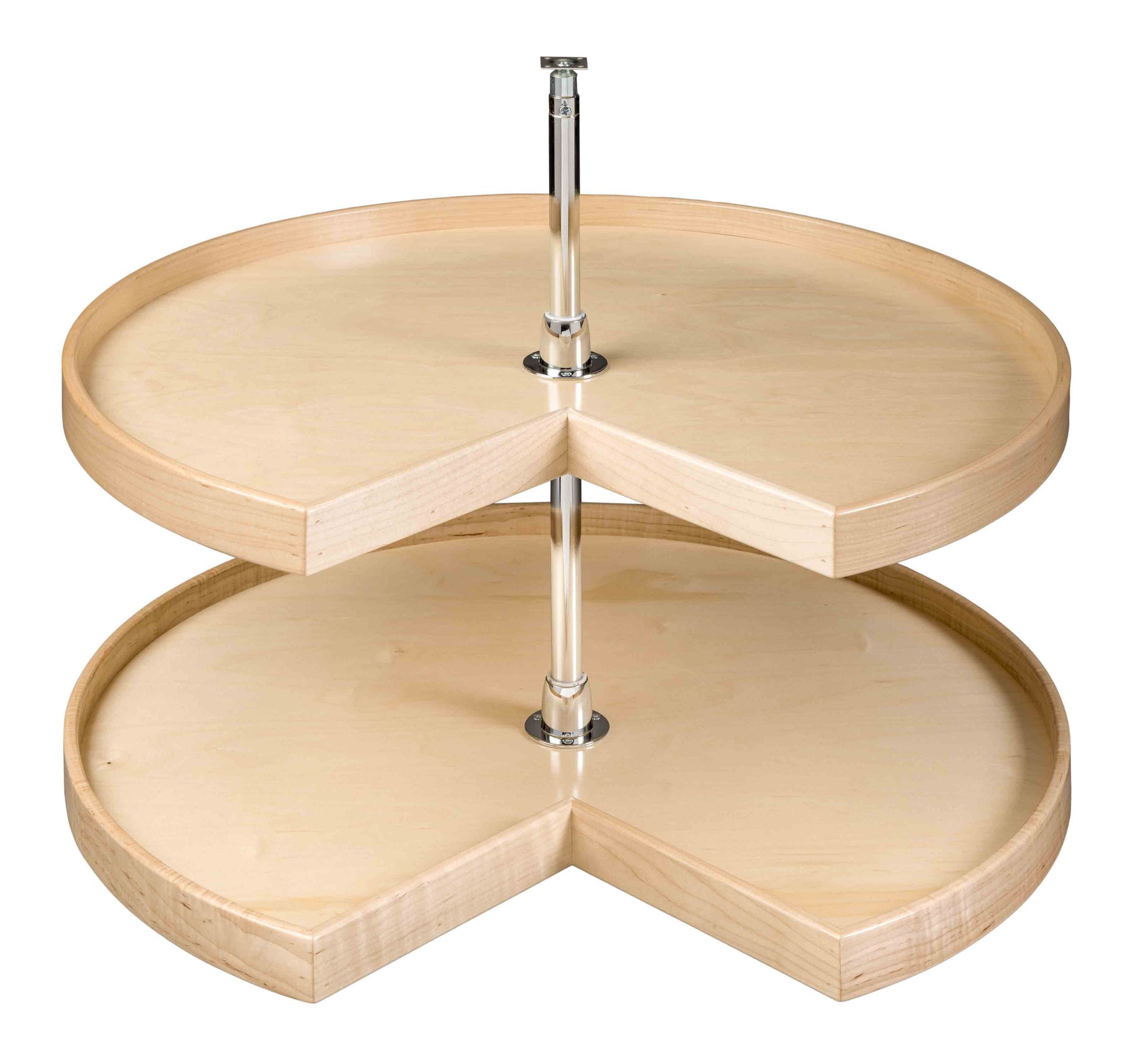 The Contender Series hardware allows for custom height placement on the upper shelves as well as dependently rotating shelves. The center pole height is adjustable for custom cabinet heights.