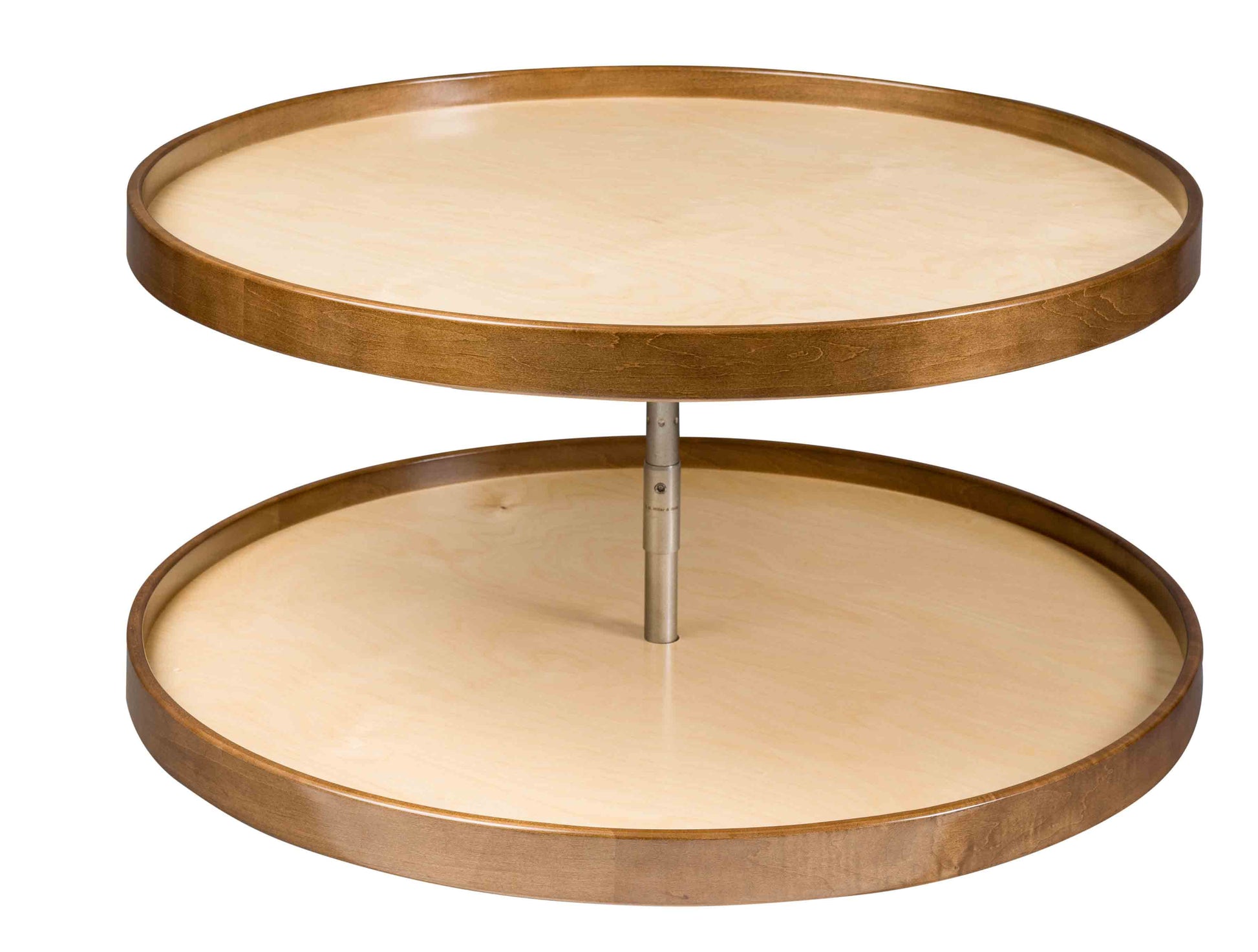 Walnut Creek Lazy Susans provide classic, accessible corner cabinet storage. Each premium Baltic Birch deck is encircled with a walnut stained maple rim.